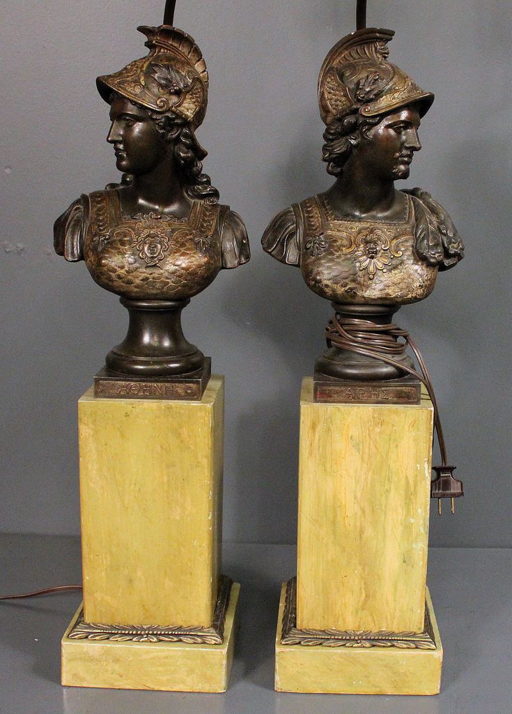 Pair of Resin Military Head Lamps; resin military head bust mounted on wood base. 47" h., 6 1/2" sq. base Pair of Resin Military Head Lamps; resin military head bust mounted on wood base. 47" h., 6 1/2" sq. base