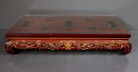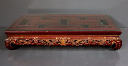 Chinese Carved Elm Tea Table; carved oriental design glass top tea tray or child's table. 29 1/2" w., 15 1/2" d., 6" h. Chinese Carved Elm Tea Table; carved oriental design glass top tea tray or child's table. 29 1/2" w., 15 1/2" d., 6" h.