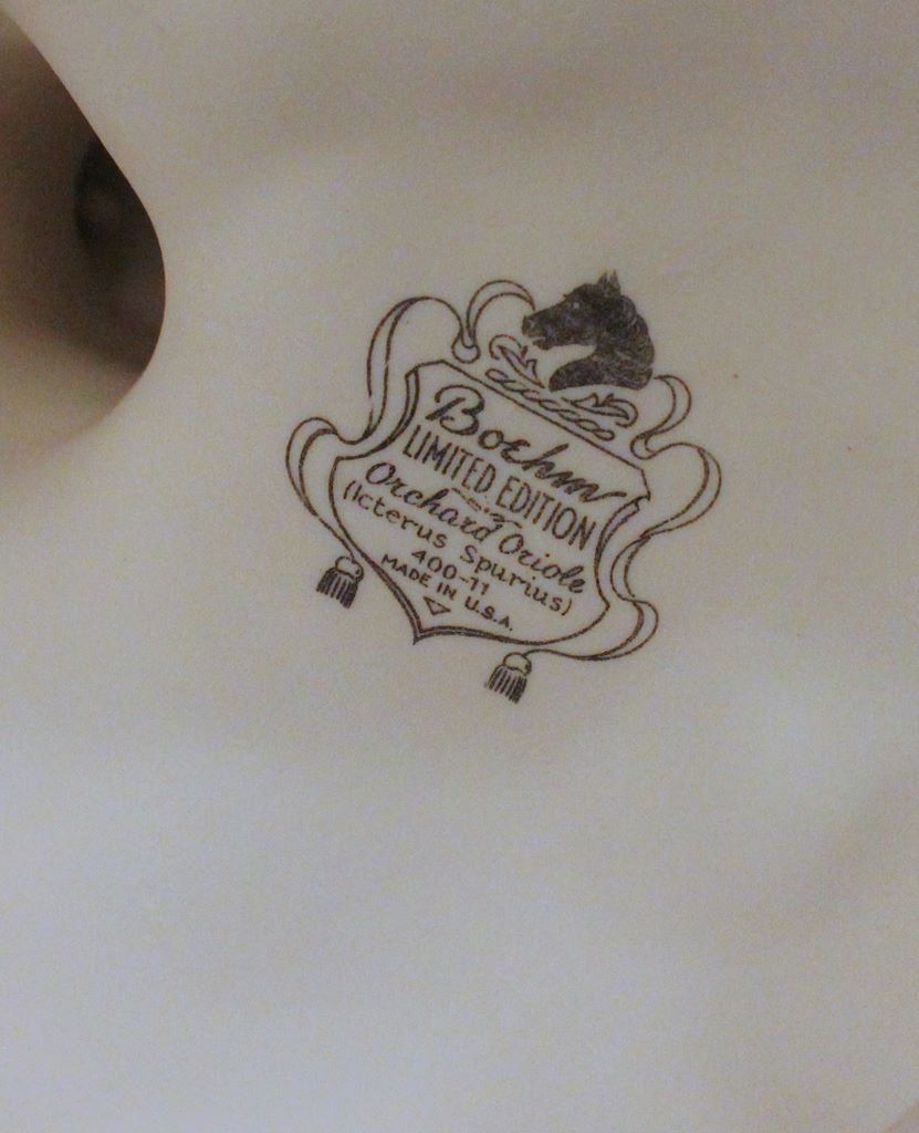 Boehm Porcelain Figural Group; "Orchid Oriole" #400-11, limited edition, orioles on limb, yellow orchid. 12" h., 14" w. Boehm Porcelain Figural Group; "Orchid Oriole" #400-11, limited edition, orioles on limb, yellow orchid. 12" h., 14" w.