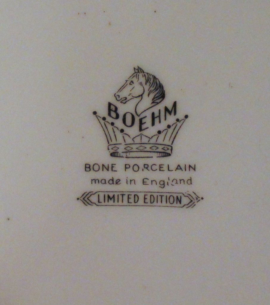 Boehm Porcelain Figurine, made in England of Blue Bird on stump with mushroom. 8" h., 8" w. Boehm Porcelain Figurine, made in England of Blue Bird on stump with mushroom. 8" h., 8" w.
