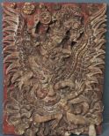 Two Hindu Temple Blocks (Cambodia, Burma, or Laos); carving of dancer and dragon, gold and red highlights (15' w., 20" h.); carving of lady reclining in dragons head. 19th century. (23 1/2" w., 12 1/2" h.) Two Hindu Temple Blocks (Cambodia, Burma, or Laos); carving of dancer and dragon, gold and red highlights (15' w., 20" h.); carving of lady reclining in dragons head. 19th century. (23 1/2" w., 12 1/2" h.)