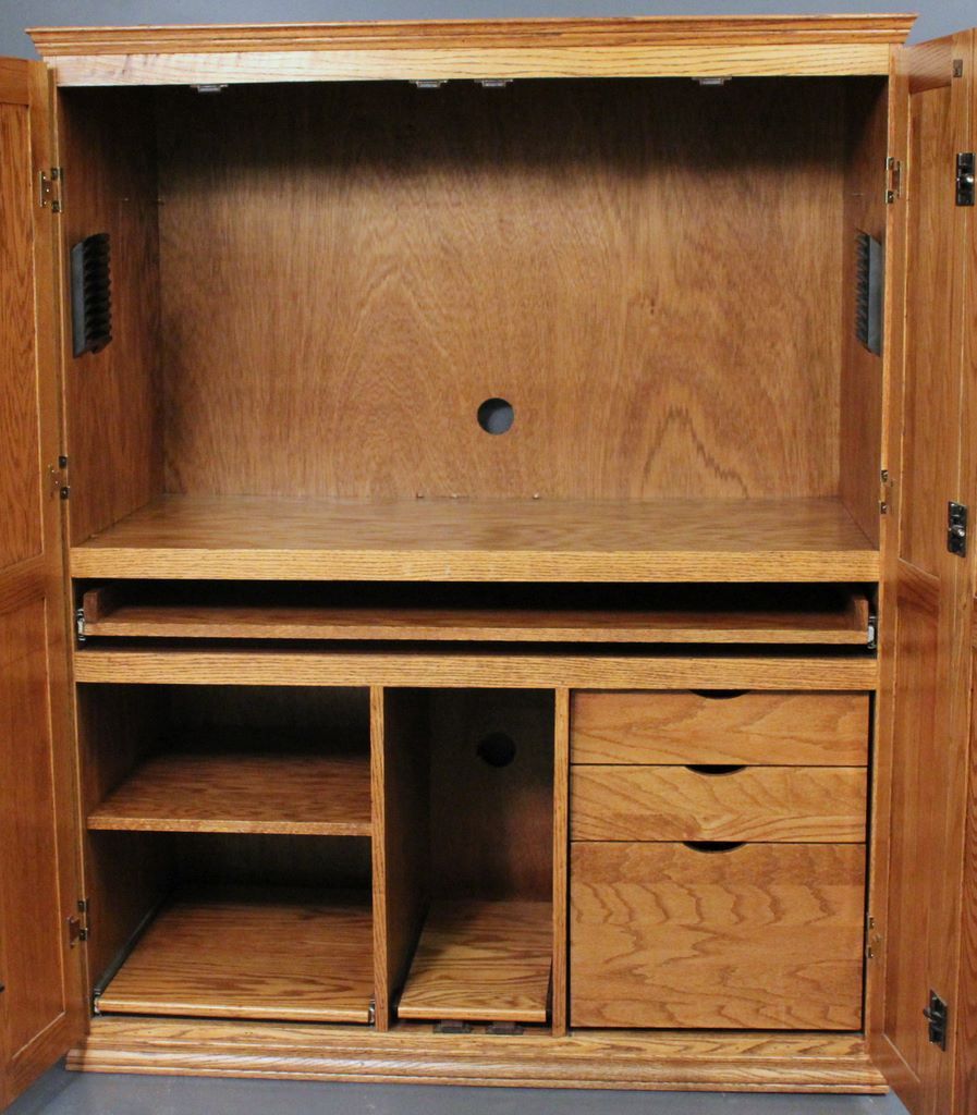 Contemporary Oak Entertainment Cabinet; two door with interior drawers and writing area; 49 1/2" w., 25" d., 62" h. Contemporary Oak Entertainment Cabinet; two door with interior drawers and writing area; 49 1/2" w., 25" d., 62" h.