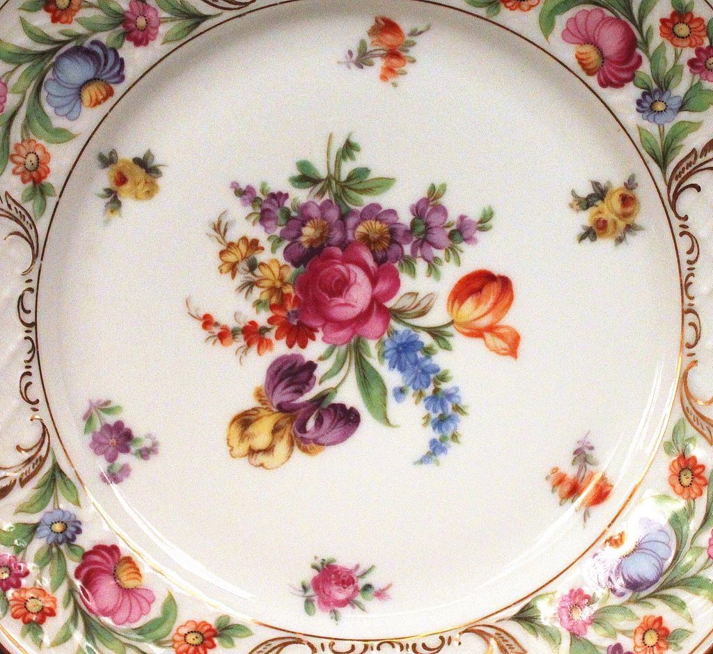 Early 20th Century Set of Bavarian Dresden China; Dinner Service of Garland swag pattern Dresden China. Set: thirteen (7 3/8" dia.) plates, twelve cups, twelve (9 3/8" dia.) plates, twelve (2 1/2" h.) demitasse cups, twelve (4 1/4" dia.) demitasse saucers, twelve (5 1/2" dia.) saucer, one (10 1/2" dia.) compote; seventy-four (74) Total pieces; few chips. Early 20th Century Set of Bavarian Dresden China; Dinner Service of Garland swag pattern Dresden China. Set: thirteen (7 3/8" dia.) plates, twelve cups, twelve (9 3/8" dia.) plates, twelve (2 1/2" h.) demitasse cups, twelve (4 1/4" dia.) demitasse saucers, twelve (5 1/2" dia.) saucer, one (10 1/2" dia.) compote; seventy-four (74) Total pieces; few chips.