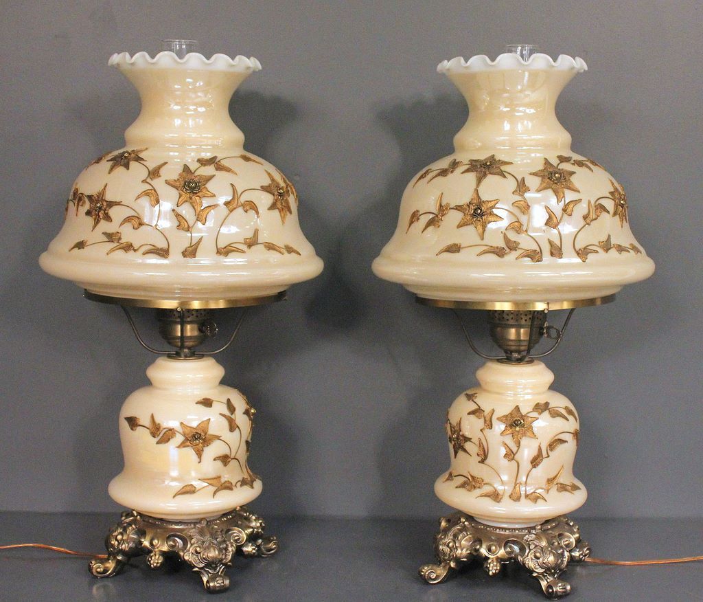 Pair Reproduction Gone With The Wind Lamps. 27 1/2" h., 14 1/2" dia. Pair Reproduction Gone With The Wind Lamps. 27 1/2" h., 14 1/2" dia.