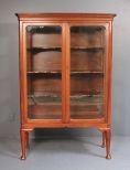 20th Century Mahogany China Cabinet; with two glass doors, three interior shelves with plate rack, all supported by turned legs; 40" w., 15" d., 66" h. 20th Century Mahogany China Cabinet; with two glass doors, three interior shelves with plate rack, all supported by turned legs; 40" w., 15" d., 66" h.