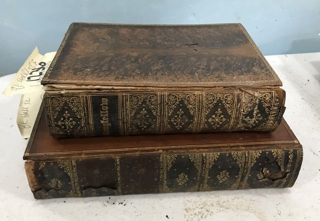 Henry LongFellow and Plutarch's Lives, leather, worn covers, antique. Henry LongFellow and Plutarch's Lives, leather, worn covers, antique.