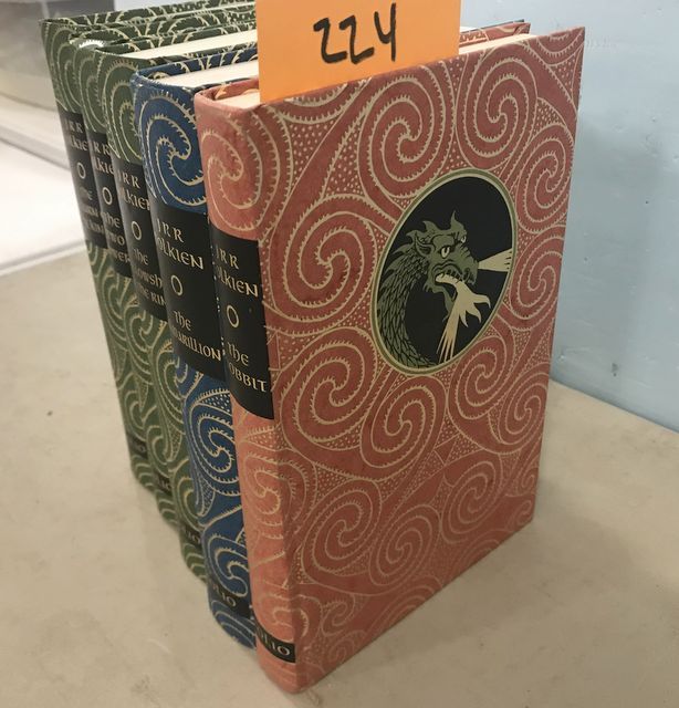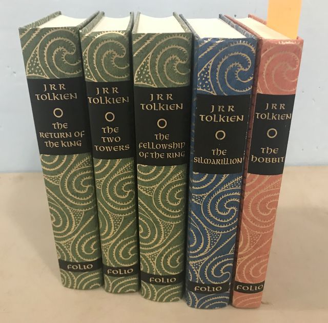 JRR Tolkien Book Collections, gold bound paper covers, The Fellowship of the Ring, The Two Towers, Return of the King, The Silmarillion, The Hobbit, mint condition. JRR Tolkien Book Collections, gold bound paper covers, The Fellowship of the Ring, The Two Towers, Return of the King, The Silmarillion, The Hobbit, mint condition.