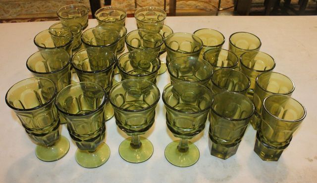 104 Set of Green Glass Stemware set of 26 green glass stemware