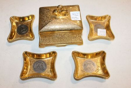 123 Le Mieux China Le Mieux China, 24 kt. Gold box and four small dishes to match.
