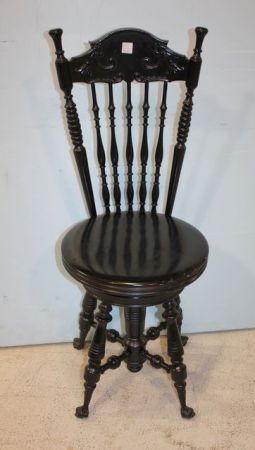Painted Black Chair Back Piano Stool Painted Black Chair Back Piano Stool has ball and claw foot, 37"h. Painted Black Chair Back Piano Stool Painted Black Chair Back Piano Stool has ball and claw foot, 37"h.