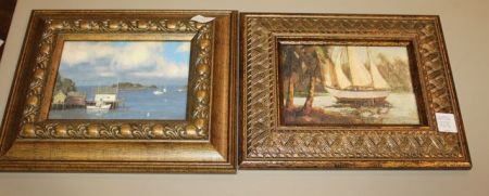 207 2 Contemporary Pieces of Art Paintings of Boats, 11"w., 9"h.
