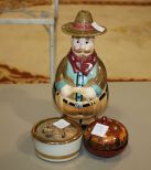 Decorative Round Box, Red Lacquer Round Box, Ceramic Western Gent Bottle Decorative Round Box, Red Lacquer Round Box 3"dia., Ceramic Western Gent Bottle 10"h. Decorative Round Box, Red Lacquer Round Box, Ceramic Western Gent Bottle Decorative Round Box, Red Lacquer Round Box 3"dia., Ceramic Western Gent Bottle 10"h.
