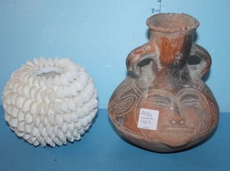 213 Terra Cotta Face Vase and Shell Candleholder Terra Cotta Face Vase and Shell Candleholder.
