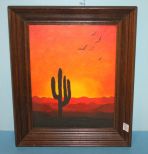 231 Oil Painting of Sunset with Cactus 15"w., 18"h.