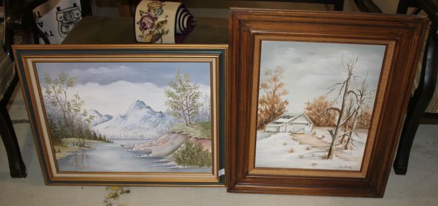 236 Two Oil Paintings of Landscape Scenes signed Lou Bailey 28" x 22", 24"w, 28"h.