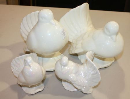Four Ceramic Pigeons 8", 5"h. Four Ceramic Pigeons 8", 5"h.