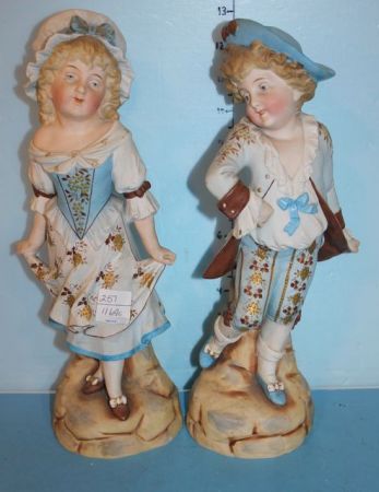251 Pair of Handpainted Bisque Figurines base on boy broken and repaired, 13"h.