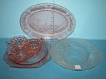 264 Pink Depression Glass Sugar, Creamer, cup, clear 10" plate, pink octogan shape plate 9", pink oval 12" platter.
