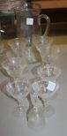 Etched Glass Pitcher, Nine Small Etched Wine Glasses, 25th Anniversery Bell Wine Glasses-4"-5"h. Etched Glass Pitcher, Nine Small Etched Wine Glasses, 25th Anniversery Bell Wine Glasses-4"-5"h.