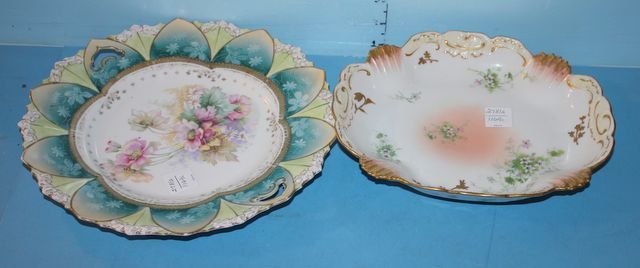 Hand Painted Cake Plate, Hand Painted Limoge Bowl Cake Plate: 11"., Limoge Bowl: 10"dia. Hand Painted Cake Plate, Hand Painted Limoge Bowl Cake Plate: 11"., Limoge Bowl: 10"dia.