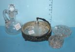 Two Glass Frogs, Cruet Divided Dish Divided Dish: 5". Two Glass Frogs, Cruet Divided Dish Divided Dish: 5".