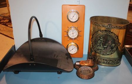 293 Vintage Garbage Can, Black Tin Basket, Vintage Baby Shoe/Ash Tray, Barometer Vintage Garbage Can, Black Tin Basket, Vintage Baby Shoe/Ash Tray, Barometer