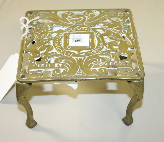 19th Century Brass Trivet 5"square., 3"h. 19th Century Brass Trivet 5"square., 3"h.