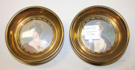 344 Three Vintage Flapper Bags and Two Small Round Vintage Prints of Young Ladies 4"dia.