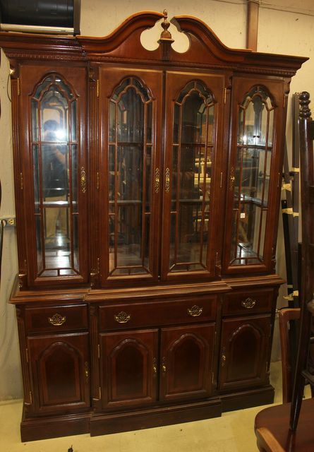 Contemporary China Cabinet Upper Section has four glass doors, three drawers over four doors. 52"w., 18"d., 85"h. Contemporary China Cabinet Upper Section has four glass doors, three drawers over four doors. 52"w., 18"d., 85"h.