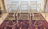 Rectangular Glass Top Patio Table And Set of Six Metal Patio Chairs Rectangular glass top patio table with umbrella stand; 63" w., 39" d., 28" h. Set of six metal patio furniture chairs; 22" w., 25" d., 35" h. Rectangular Glass Top Patio Table And Set of Six Metal Patio Chairs Rectangular glass top patio table with umbrella stand; 63" w., 39" d., 28" h. Set of six metal patio furniture chairs; 22" w., 25" d., 35" h.