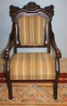 383 19th Century Mahogany Arm Chair Carved mahogany 19th century arm chair with empire scroll arms, velvet upholstery, original finish matches previous lot. 24"w., 23"d., 44"h.