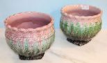 Pair McCoy Majolica Style Jardinire Knights on horses design, Jardinire age time crack in one. 10"dia. 9"h. Pair McCoy Majolica Style Jardinire Knights on horses design, Jardinire age time crack in one. 10"dia. 9"h.