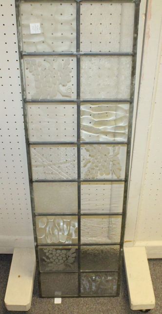 Unframed Leaded Glass Window Unframed Leaded Glass Window with etched grapes (one pane cracked) from Cristo's 42"w., 12"h. Unframed Leaded Glass Window Unframed Leaded Glass Window with etched grapes (one pane cracked) from Cristo's 42"w., 12"h.