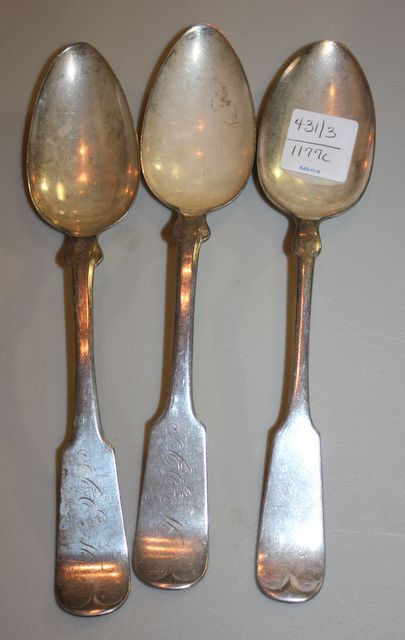 431 Serving Spoons Pair point Silverplate serving spoon and two Reed and Barton Silverplate serving spoons.