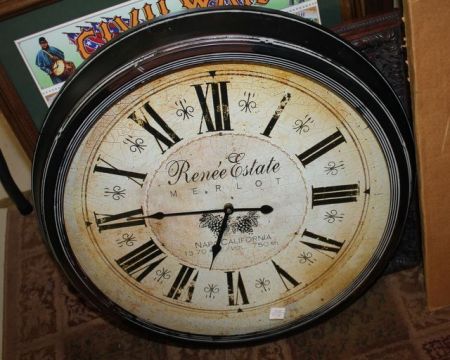 Decorative Tin Renee Estate Merlot Round Wall Clock 24"dia. Decorative Tin Renee Estate Merlot Round Wall Clock 24"dia.