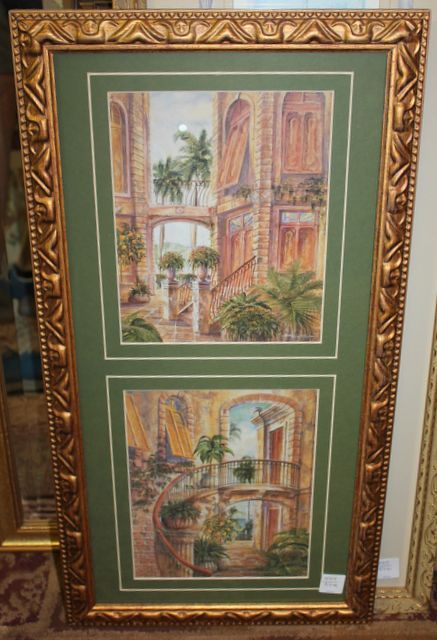 444 Two Prints of Courtyards in Frame 13"w., 25"h.