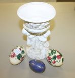 Plaster Compote with Three Gail Pittman Eggs 9"h. Plaster Compote with Three Gail Pittman Eggs 9"h.