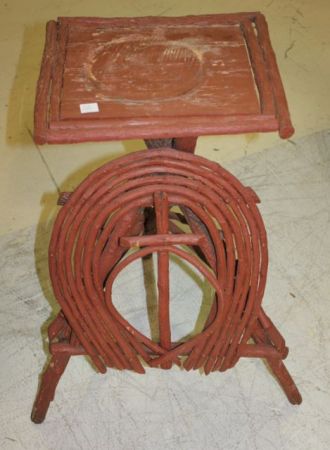 Antique Painted Twig Stand 14"sq., 27"h. Antique Painted Twig Stand 14"sq., 27"h.