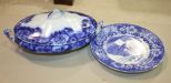 Flow Blue Covered Tureen and Semi-Porcelain English Plate Flow Blue Covered Tureen 12"dia., and Semi-Porcelain English Plate 8"dia. Flow Blue Covered Tureen and Semi-Porcelain English Plate Flow Blue Covered Tureen 12"dia., and Semi-Porcelain English Plate 8"dia.