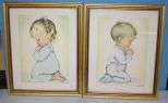 658 Two Vintage Prints "A Child's Prayer", "Bless Us All" 12"w., 15"h.