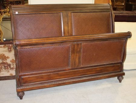 Contemporary Queen Size Sleigh Bed with Inset Cane 51"h. Contemporary Queen Size Sleigh Bed with Inset Cane 51"h.