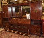 781 Contemporary King Size Bed Two mirrors in center and cabinets on each side. Cabinets have interior shelves, two bottom drawers.