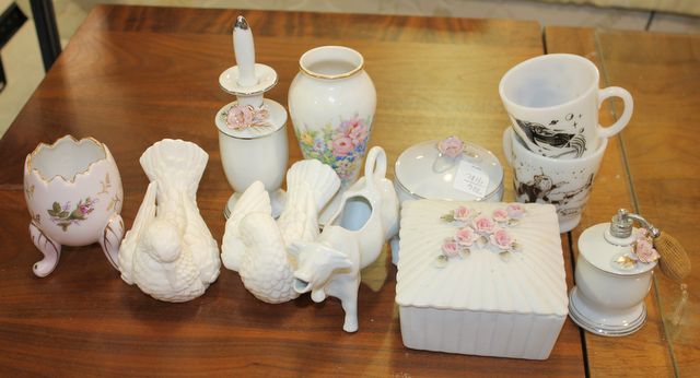 Group of Vintage Porcelain including birds, vases, box, cups. Group of Vintage Porcelain including birds, vases, box, cups.