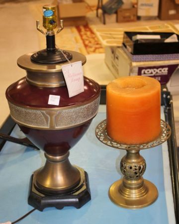 808 Reliance Decorative Lamp and Brass Candle stand Reliance Decorative Lamp 22"h., and Brass Candle stand 8"h.