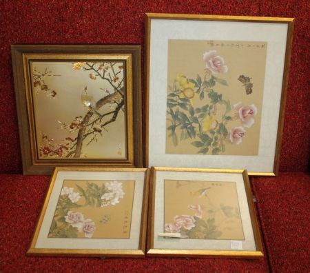 Three Handpainted Oriental Pictures and One Foil Picture, Foil, and One Picture Three Handpainted Oriental Pictures and One Foil Picture 2-10"w., 12"h., Foil 14"w., 12"h., and One Picture Three Handpainted Oriental Pictures and One Foil Picture, Foil, and One Picture Three Handpainted Oriental Pictures and One Foil Picture 2-10"w., 12"h., Foil 14"w., 12"h., and One Picture