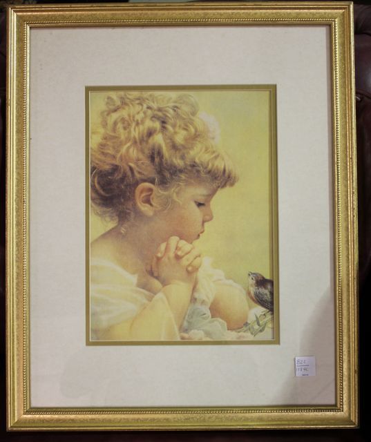 822 Print of Young Girl and Bird 17"w., 22"h.