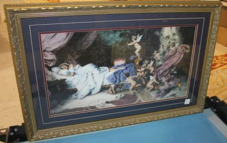 Print of Angels Surrounding Reclining Lady 36"w., 20"h. Print of Angels Surrounding Reclining Lady 36"w., 20"h.