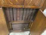 Victrola Oak Talking Machine, does work, needle needs sharpening, good condition includes assorted records, 50"h., 21"w. Location Right Wall Victrola Oak Talking Machine, does work, needle needs sharpening, good condition includes assorted records, 50"h., 21"w. Location Right Wall