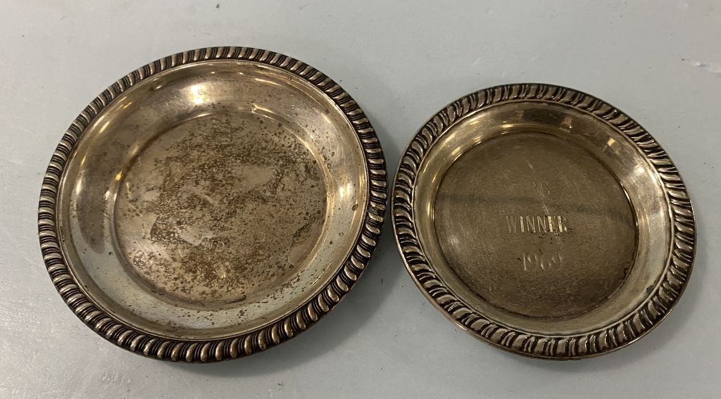 Two Sterling Nut Dishes, 4"dia, Location Front Left Glass Case Two Sterling Nut Dishes, 4"dia, Location Front Left Glass Case
