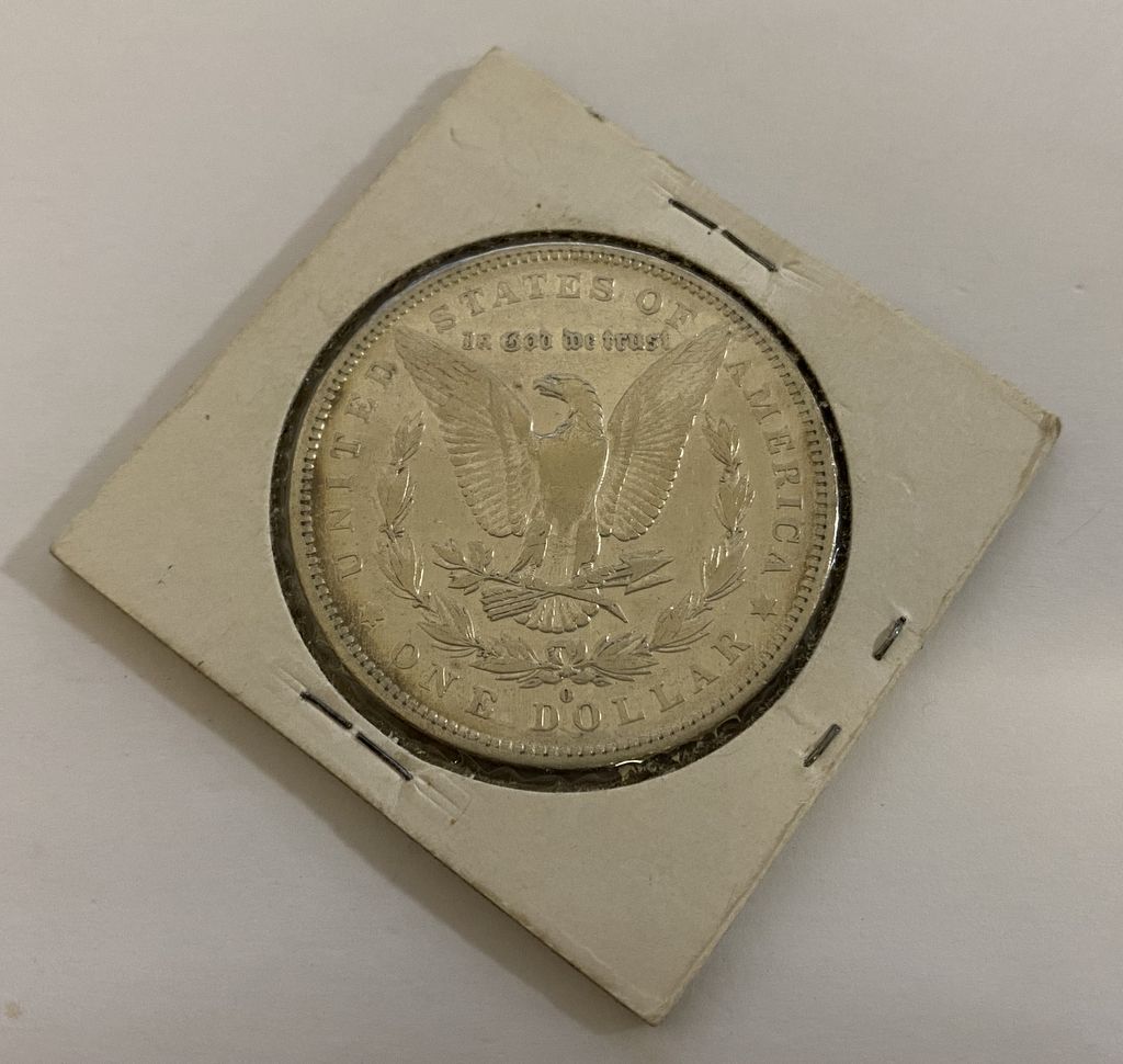 1879-O Morgan Silver Dollar, fine, paper case, location case by Office 1879-O Morgan Silver Dollar, fine, paper case, location case by Office